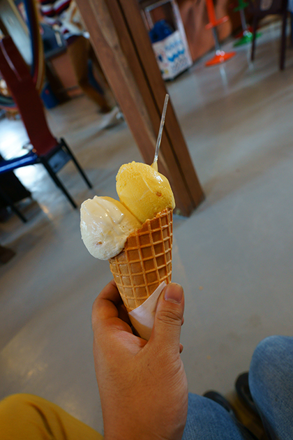 半年ぶりの北海道。 卒業式翌日以来のだから、本当に半年ぶり。 1日目はノースサファリ札幌に行く予定… そう、あくまで予定。 いきなり出鼻をくじかれます。 1. 飛行機若干延着 2. レンタカー受付激混み 特にレンタカーが、僕はあらゆる処理をPC上でしていたので、手続きがほとんどないのですが、他の観光客は色々書類に書いていたりしてとにかく遅い。 当初の出発予定を40分も過ぎてしまいました。 最初に行くのは、東千歳バーベキュー。 丁度時間的にもお昼の時間。 ここのバーベキュー(鳥の半身×2)に惚れて早5年。 今回は基本的に懐かしの場所再訪コースです。 まだ反面しか焼いてませんが、これがうまいんですよねぇ。 そこからは、ちょっと周辺の探索。 この時期の北海道、地味ではありますが、収穫の時期という事もあり、画にはなるんですよね。 枚数は撮ってませんが、久々に撮影を楽しめました。 昼飯後のおやつは牛小屋のアイス。 こちらも5年前に初めて行ってからのお気に入り。 なんと、内装が変わってました。 今年からリニューアルオープンしたそうです。 相変わらずおいしいアイスでした。 今回は、スイートポテトのアイスとパンプキンアイス。 秋×秋のとっても秋の味覚なおやつでございました。 店舗裏の仔牛さんも相変わらずいらっしゃいます。 ここからノースサファリに向けて出発。 道中、HTB横を通ったので、久々の聖地巡礼・HTB本丸討ち入り。 HTB社屋の一般コーナー少し内装変わってました。 記念スタンプとか前は無かった気がするんだが… さて。 ここまでで15時。 ここからノースサファリに行くのに1時間。 ギリギリ最終入園時間に間に合うぐらい。 これではあまり意味がないと判断し、急遽地味に今まで登ったことのなかった藻岩山へ。 2時間ぐらい暇つぶししないといけませんでしたが、綺麗な夜景を拝めました。 ちょっとガスってたのが残念。 ちなみに、写真左側の黒い部分が我が母校、北大、写真中央の明るい所が大通り・すすきのでございます。 夜景の一番綺麗なところを抑え、ホテルへ。 ここでは驚きの部屋へ。 なんと、宿泊者1名に対して、4人部屋! 不必要にでかい! どれ位でかいかというと、本来寝るべき方向と直角に寝ても普通に寝れるぐらい。 その後は、半年ぶりの、行きつけの沖縄料理店へ。 なんか、全体的に料理減ってました。 仲のいい店員さんもいなかったし… ただ、相変わらずいろんな泡盛が飲めて楽しかったです。 2時間ほど飲んで終了。 楽しく1日目を終了したのでありました。 | 次のページ>> | Calender