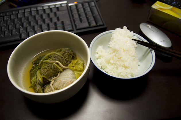 このロール白菜。作成時間が異常にかかるくせに、コストパフォーマンスが異常に悪い。今回は久々だってので作りましたが、しばらく封印するかなぁ。