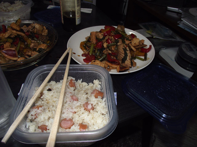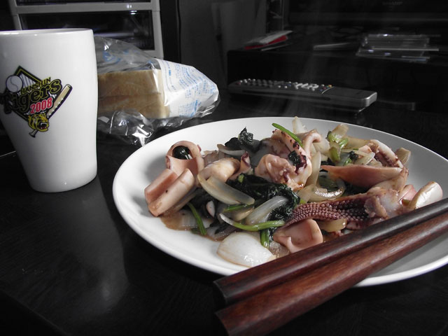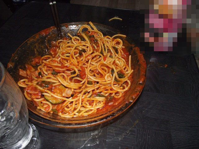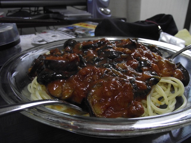 そして2品目。本当は前日に作ったなすとほうれん草のミートソーススパゲティを作りたかったのですが、なぜかなすが売り切れてて、しかたなくズッキーニで代用。こっちはうまいけど、やっぱなすでしょとか言われました。
