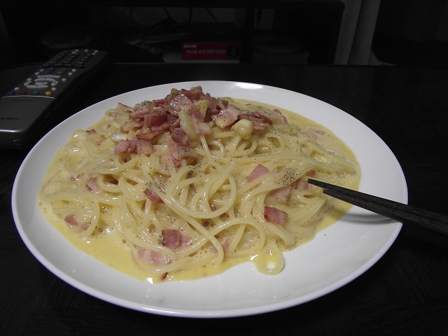 自分の家で自作のカルボナーラ食えるとは感慨深いですよ。