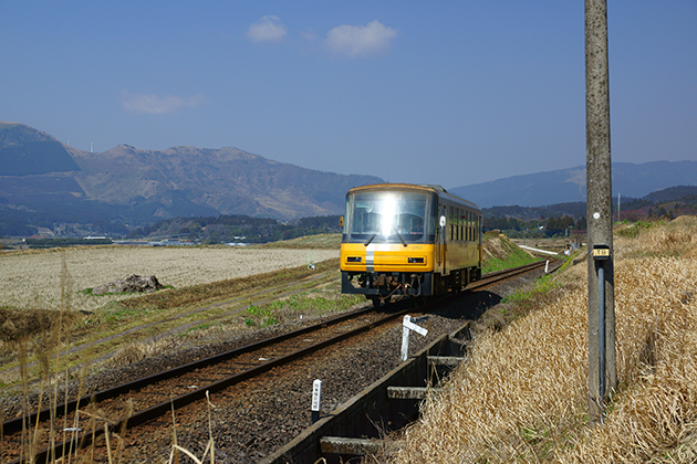 段々畑に囲まれた盆地を走る鉄道、南阿蘇鉄道の線路で、中々撮りがいのあるローカル線です。