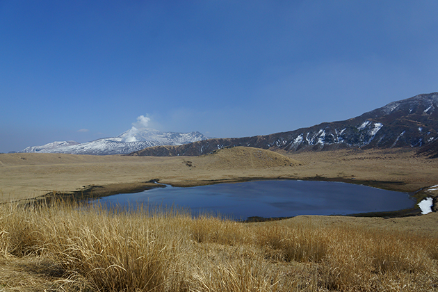 牛や馬が放牧される草千里ヶ浜というのどかな風景が見られます。