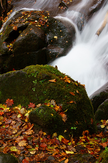 次の年もその次もずっと同じ状態は続かず、移り変わるというのを落ち葉と滝で表した作品。