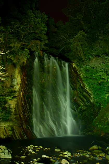 今日は締めくくりに丸尾の滝の夜間ライトアップの撮影も行ってきました。
