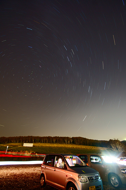 デジタル一眼の特性上仕方ない事ですが、ヘッドライトが本当にうっとおしくて、たった1385秒シャッター開けてただけで、真っ暗闇な所も、こんな街灯があるみたいな写真になっちゃうんですよね・・・