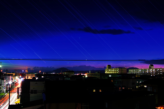 なにしろ、雲の上に星の軌跡が見えとんねんもん。