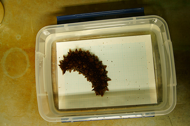 まず火曜の朝から水槽センターに行って、ナマコを一匹拿捕。