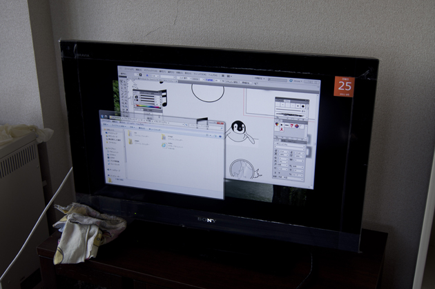 自分の机から、パソコンで動画再生して、32型テレビに出力して見れるというのが快適すぎる(笑)