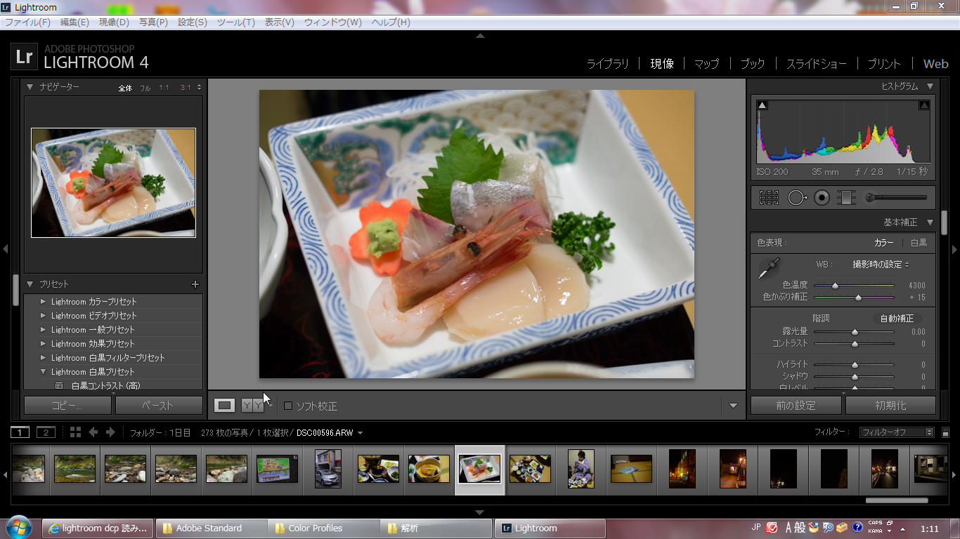 一応、「Adobe Standard」というプリセットはカメラごとに調整してあるらしいのですが、どこが調整してあるのか全くわからないぐらいに、色をはずしてます。