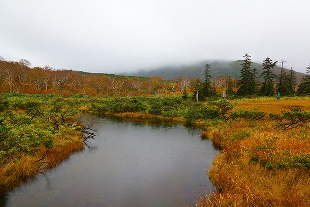 しかし、前を歩く人がトロトロと木道をふさいで歩いていたせいで、こちらもそのペースに合わせざるを得ず、ますます強くなる雨脚に、まるでプールに飛び込んだようなずぶぬれ姿になってしまいました。