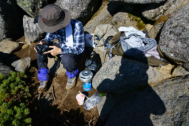 目的地・沼ノ平では同行してくれた友人と共にカップラーメン&珈琲の昼ごはん。